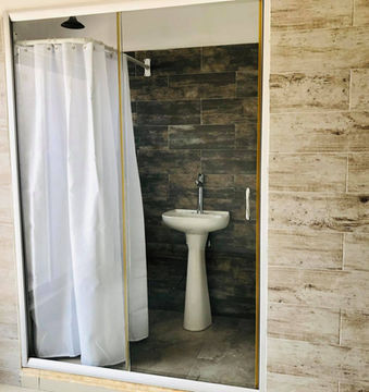 Baños privado en recámara principal y otro compartido en planta alta. Cocina equipada con cocina integral de madera con granito